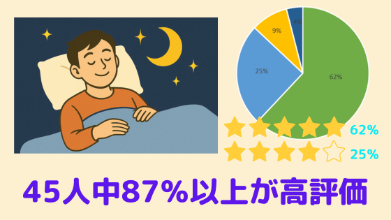 いびきのクリニック新宿院を実際利用したことがある45人の口コミから調査・分析した結果、87%以上が高評価を付けている非常に評判の良いクリニックだとわかりました。